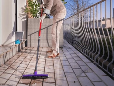 Keep your balcony fresh and clean with dusting, sweeping and maintaining surfaces.